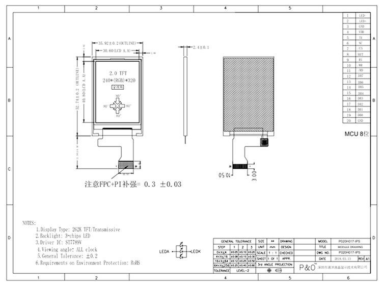 Haute résolution:L'écran LCD TFT de 2,0 pouces a généralement une résolution de 320x240 pixels, ce qui le rend capable d'afficher des images et du texte de haute qualité.